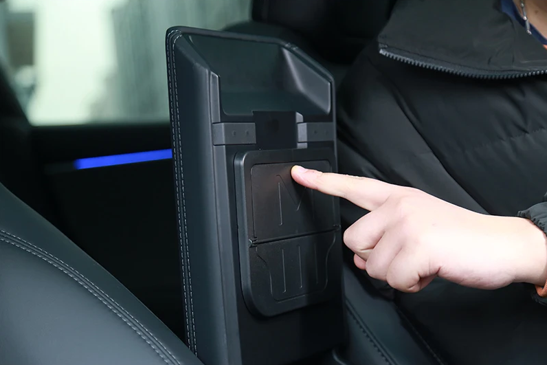 Compartimento oculto con apertura y cierre magnético, perfecto para guardar tarjetas, documentos, llaves o efectivo de forma segura y fuera de la vista debajo del descansa brazos.
